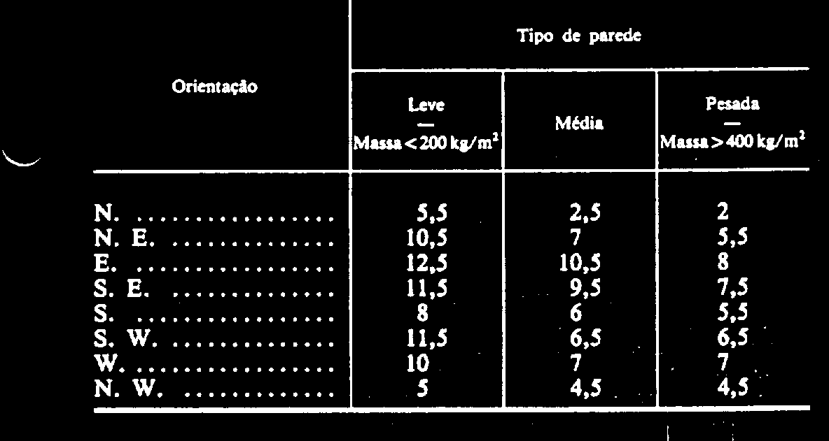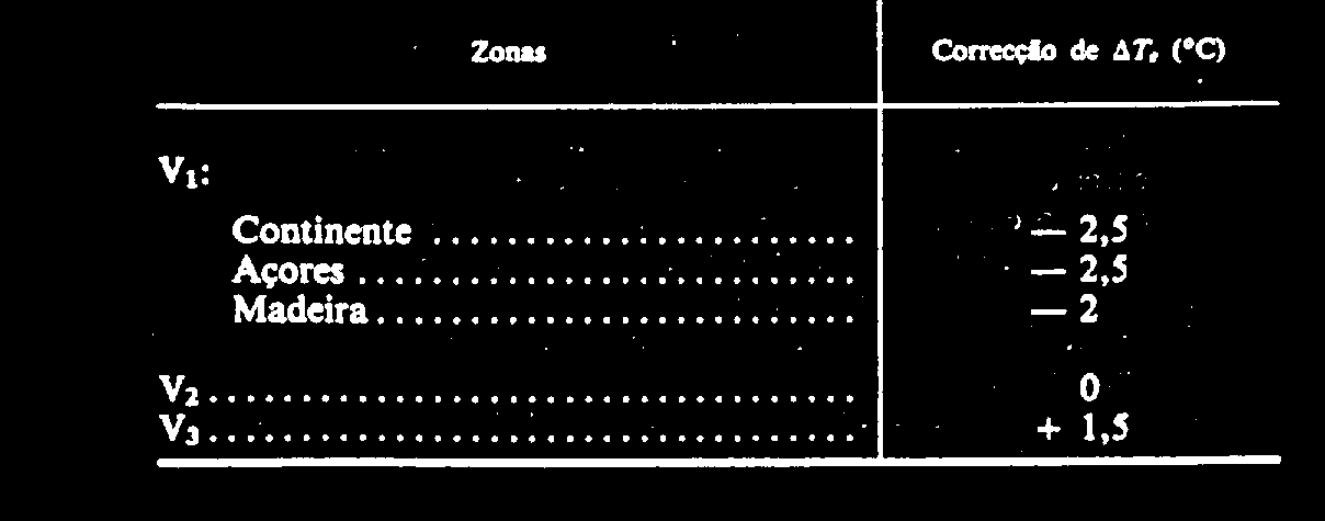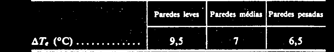 I—factor de inércia. Os valores de DTe dependem do nível de inércia térmica da parede e da sua orientação, conforme se mostra no quadro V.1.