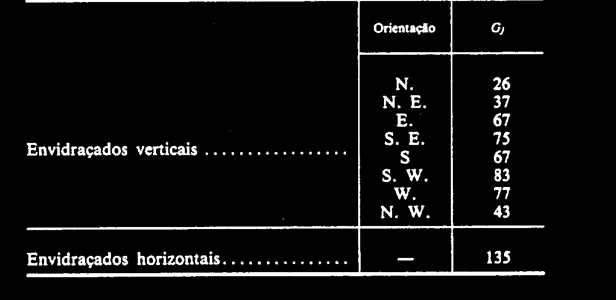 Gj—ganhos solares mensais médios em períodos de sol descoberto durante a estação de arrefecimento para cada orientação, para um factor solar de 100%;