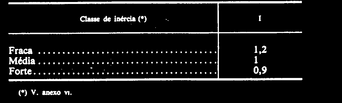 Os valores de Gj são os indicados no quadro V.4 e os valores de I são os indicados no quadro V.5.