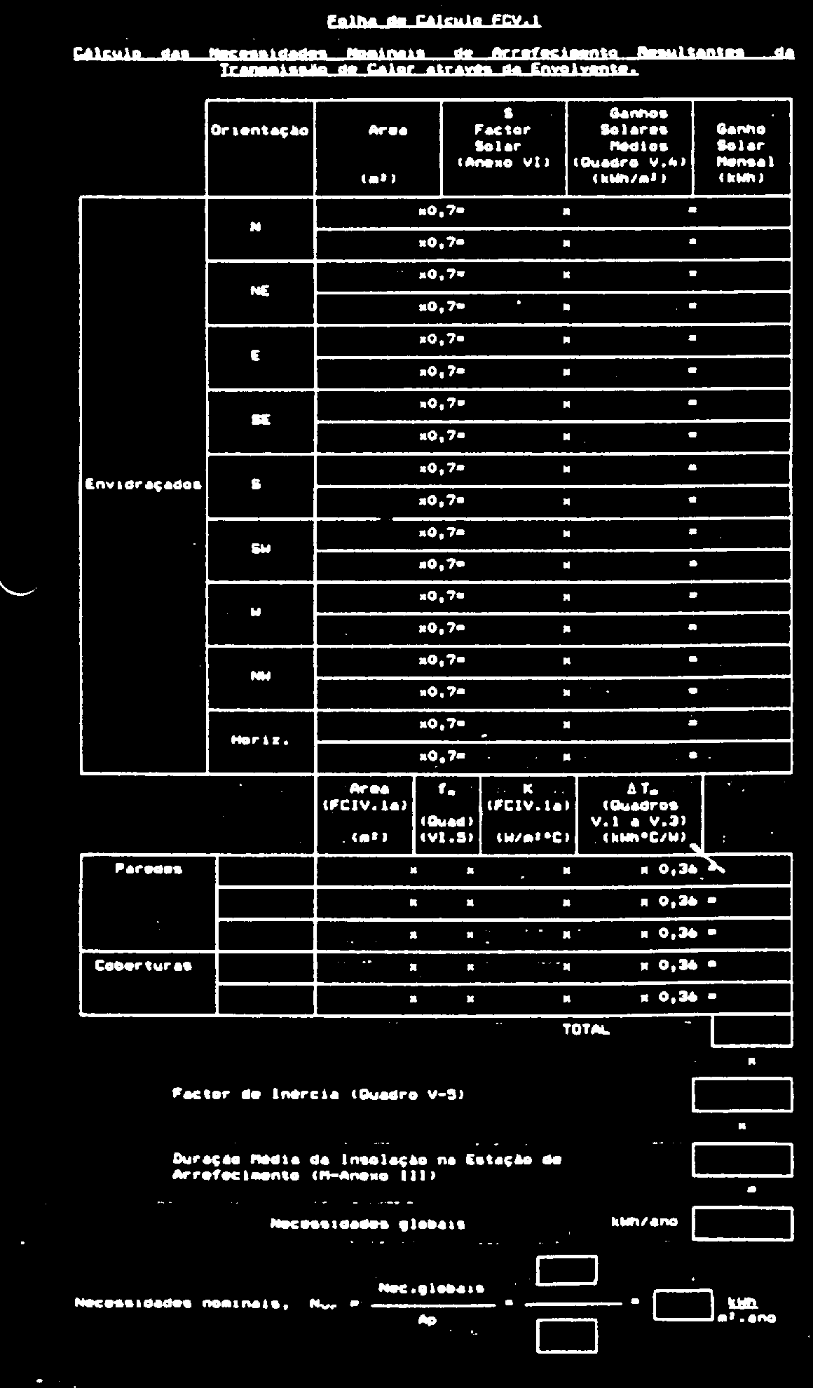 O processo de cálculo de Nvc correspondente a solução projectada para um edifício está esquematizado na folha de cálculo FCV.1. Para efeitos deste Regulamento, admitem-se as seguintes hipóteses simplificativas adicionais: